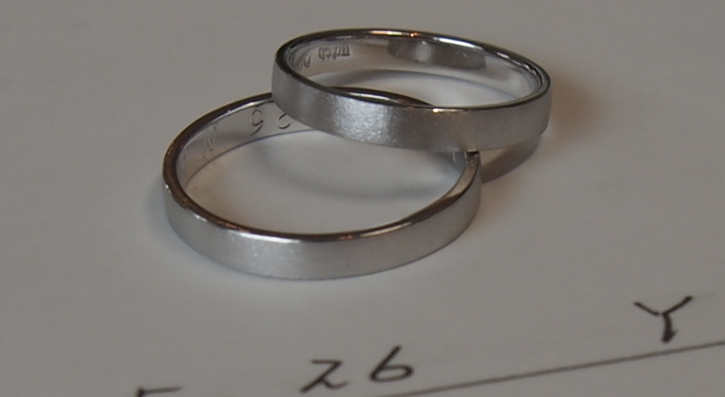 (マリッジリング)が希望とのことでプラチナの平打ちフォルムでマットな仕上
