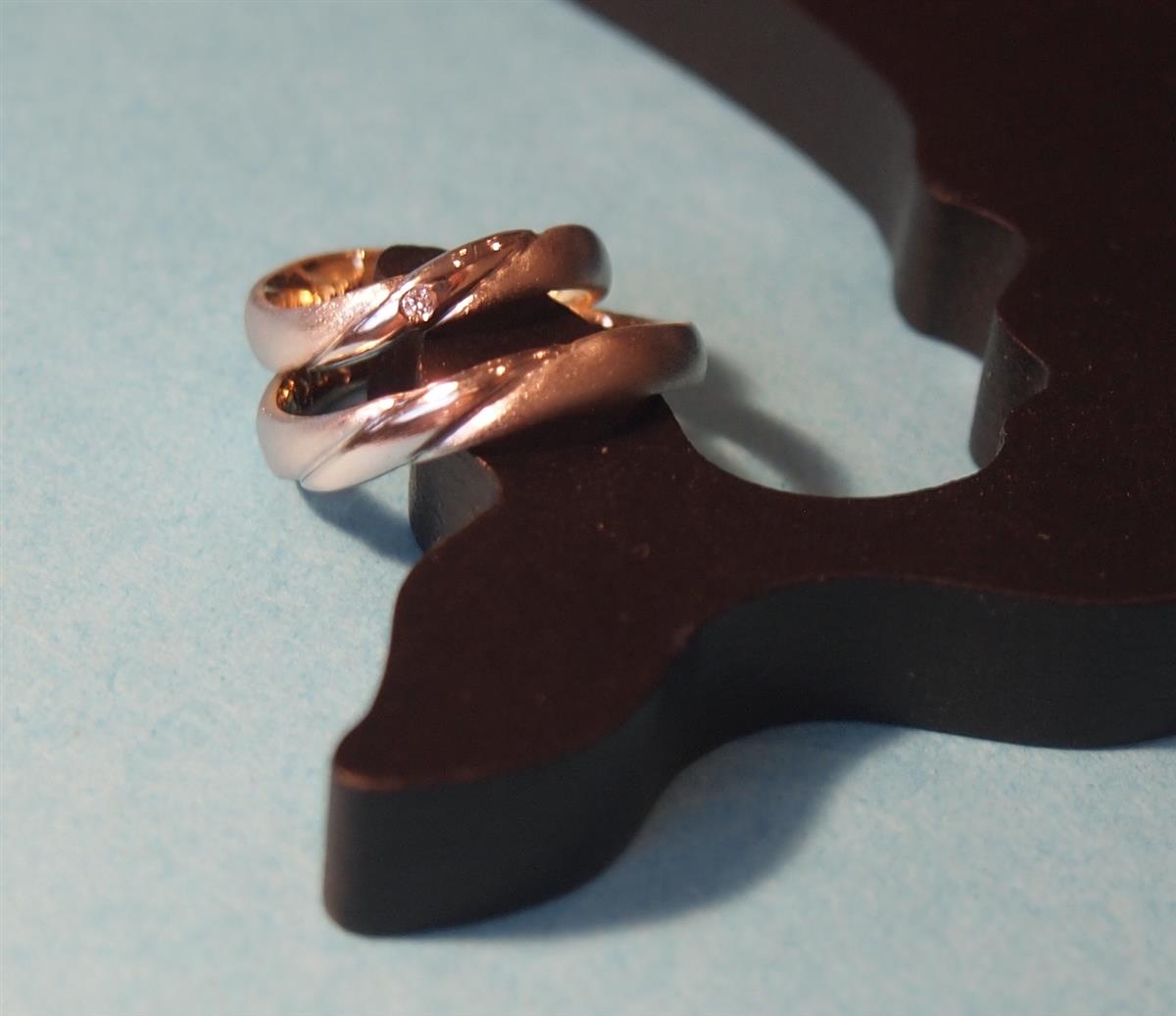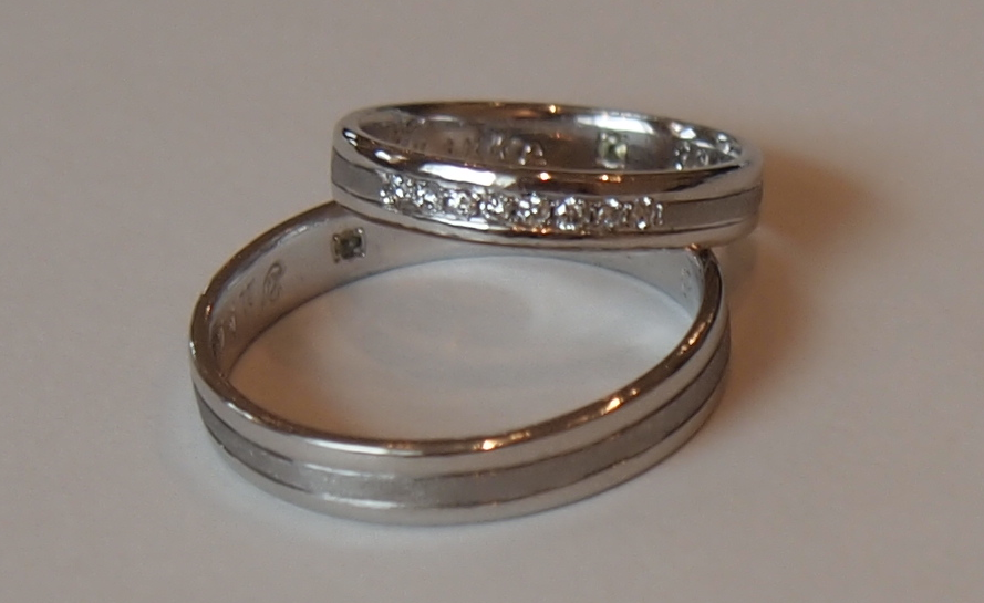 つや消し仕上げして少し濃い色とのコントラストの結婚指輪(マリッジリング)