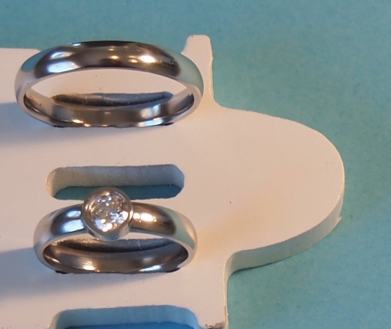 両サイドをプラチナの艶出しにして、真ん中のパラジウム割のホワイトゴールドを