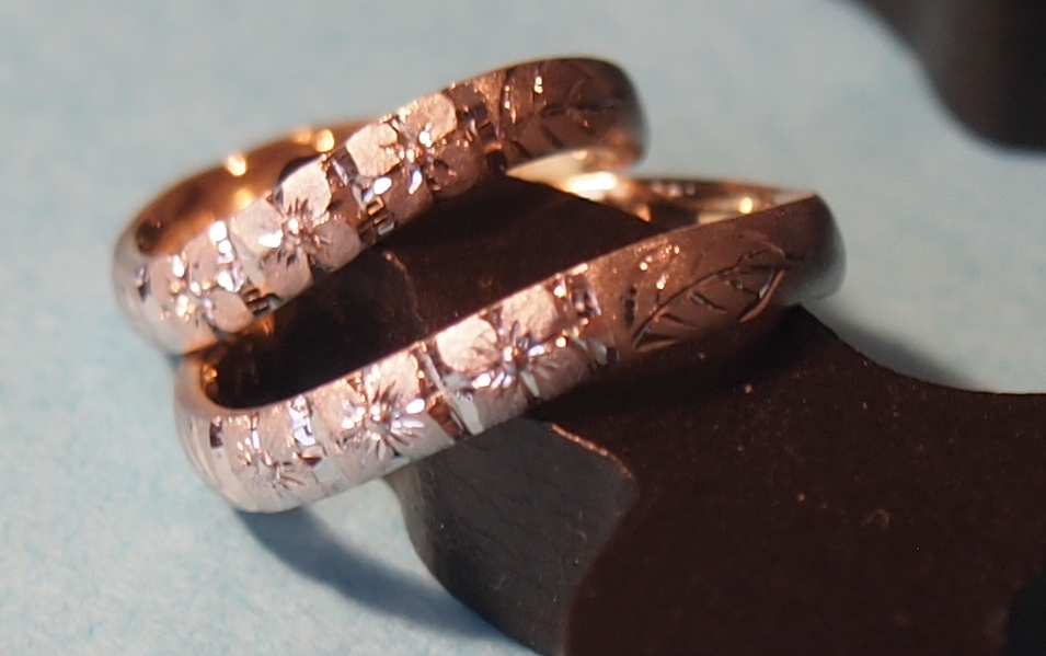 立体感あるアジサイの花を手彫した、真の世界に一つ二人だけの結婚指輪。。。