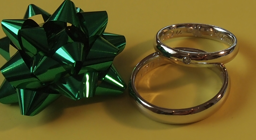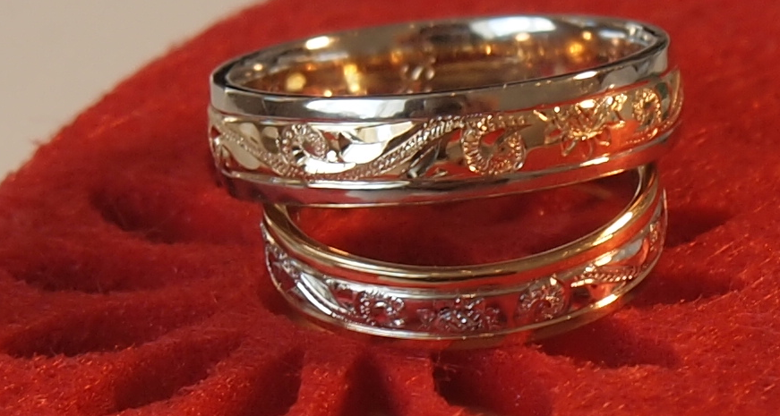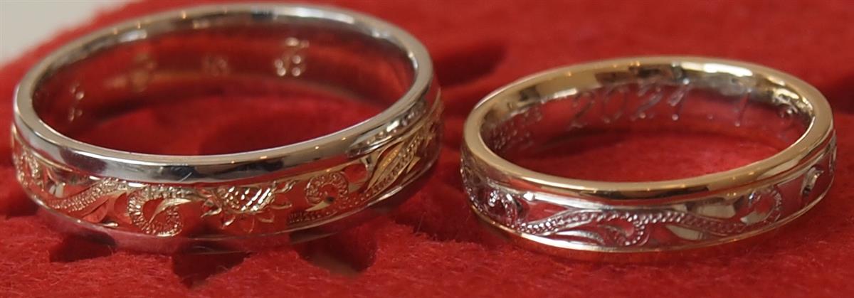 形をお二人の結婚指輪(マリッジリング)の内側にそれぞれ丁寧に手彫しました。