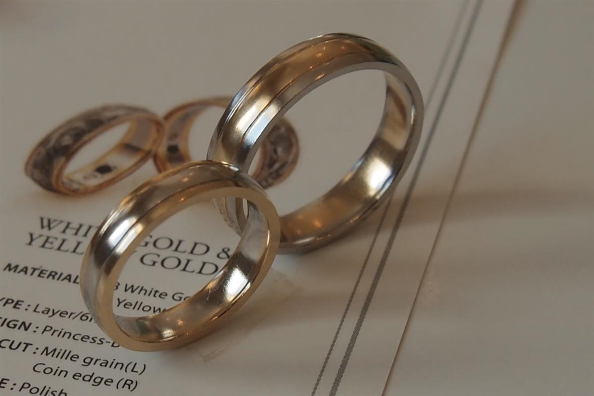 彼女はプラチナの両端を18金のイエローゴールドにして、彼は18金のイエロー