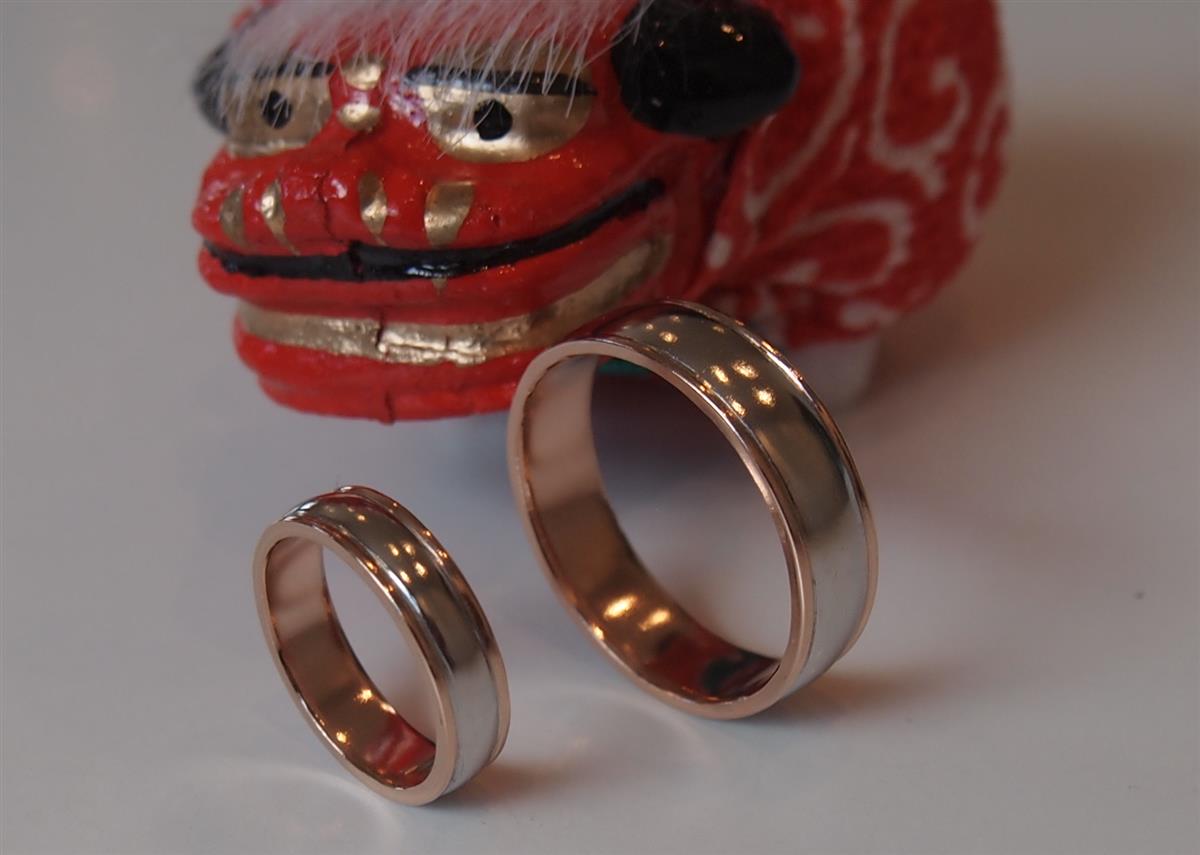 結婚指輪(マリッジリング)の内側をピンクゴールドでそして上から見える部分