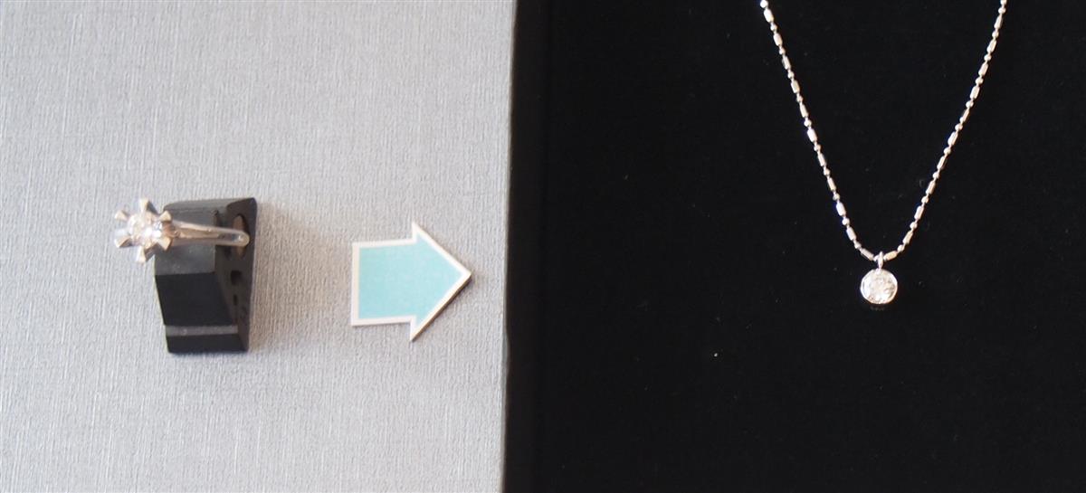 えるようにプラチナのペンダントにジュエリーリフォームしました。