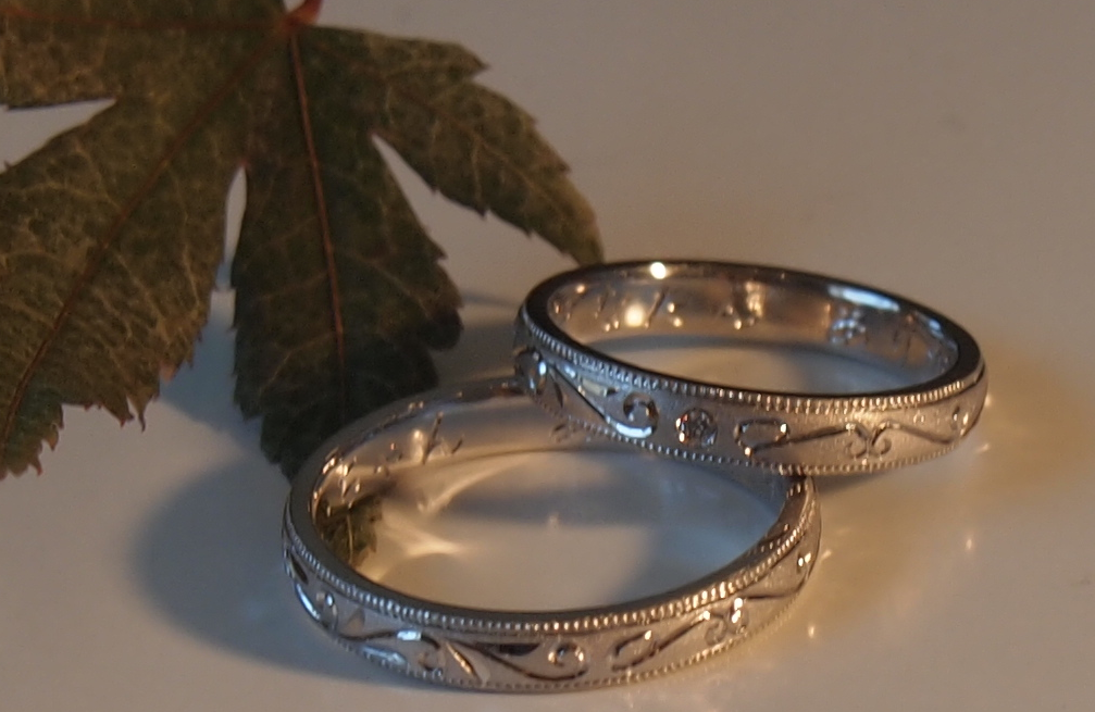 (マリッジリング)を作りたいとのことで、手打ちのミルグレインにお二人の