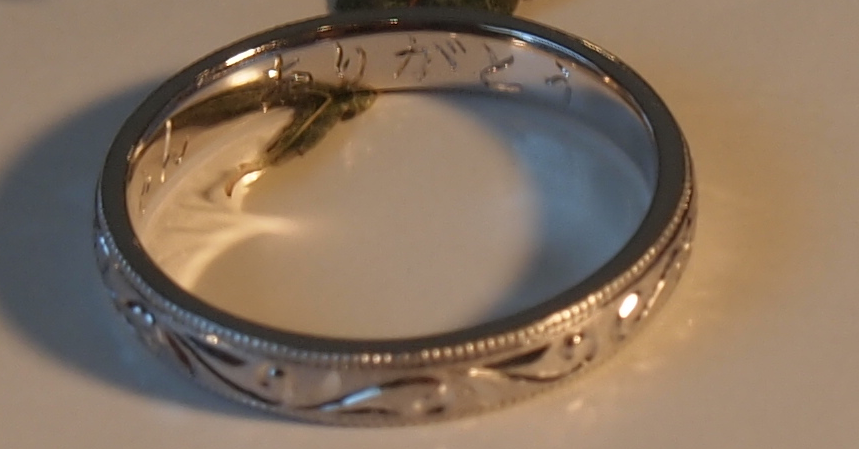 ひらかなで手彫した、心温まる結婚指輪になりました。