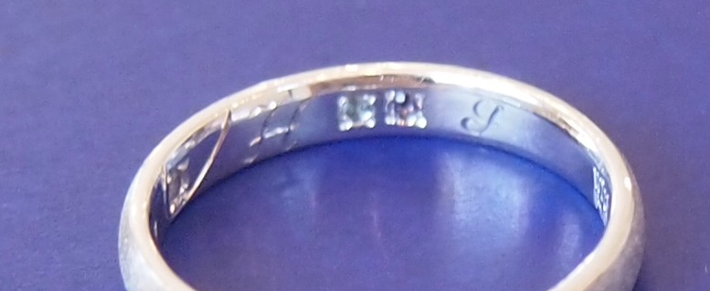そして太陽の真下の結婚指輪の内側に、彼がデザインした字体のイニシャルを