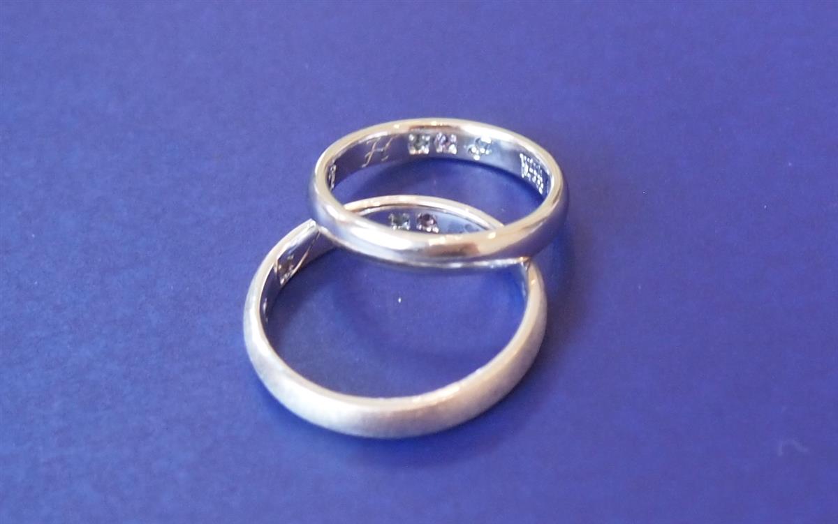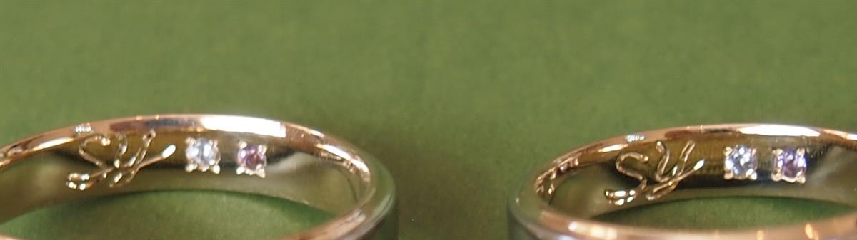 誕生石とイニシャルをお二人の結婚指輪(マリッジリング)の内側にプラスしま