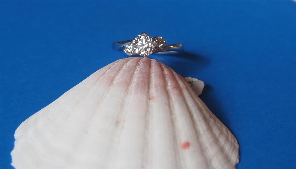 や色々なお店を回って入手したきれいなダイヤモンドの中石の両サイドに、彼女