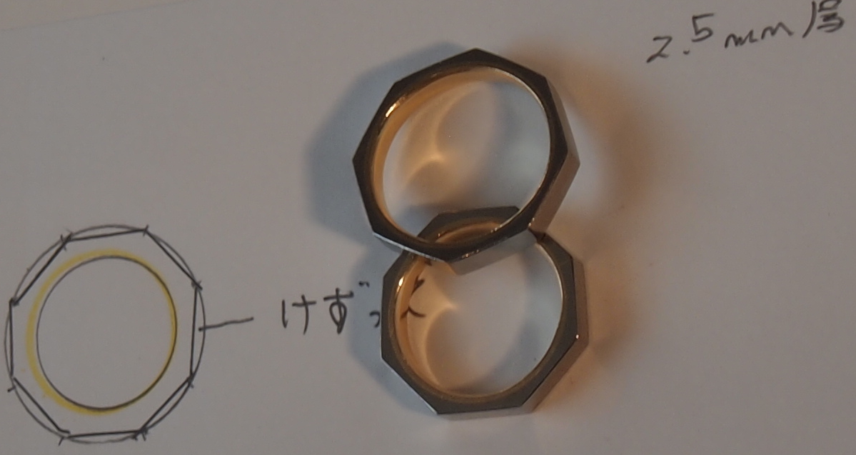 彼女は8角形の結婚指輪(マリッジリング)を作りたいとのことで、内側に18金