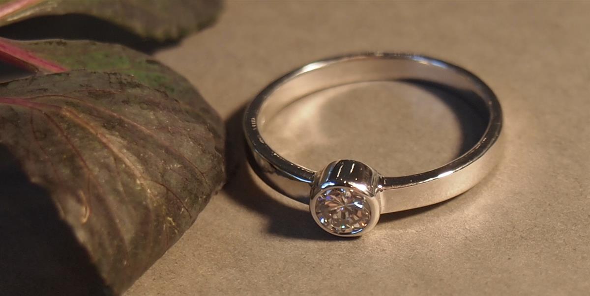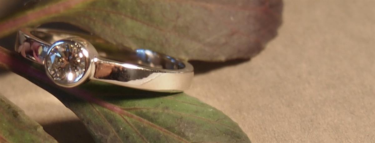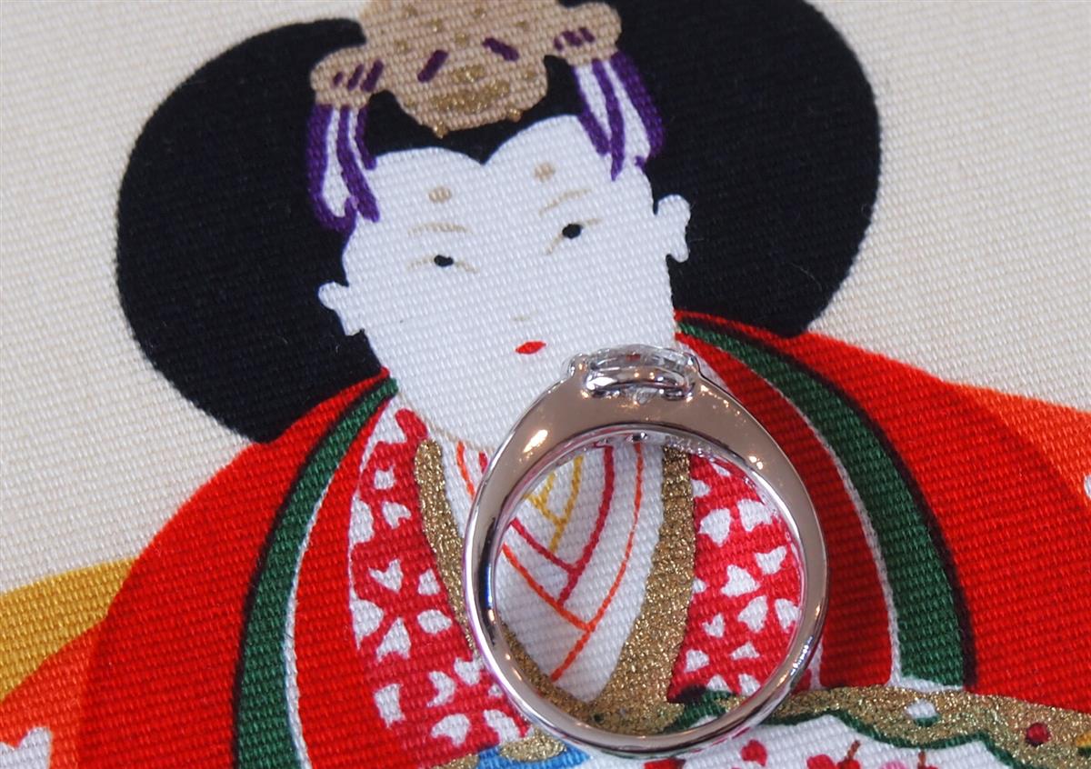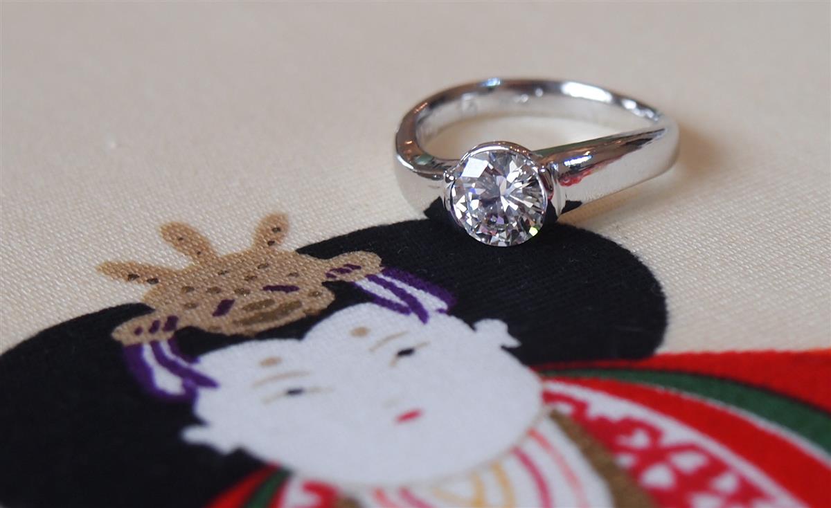 中石のダイヤモンドをプラチナで引っ掛かりのないようにフクリン留めで丁寧に