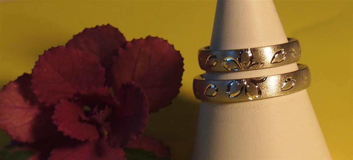 指輪の真上と真下にお二人の結婚指輪を合わせると桜の花になり、桜の花びらで