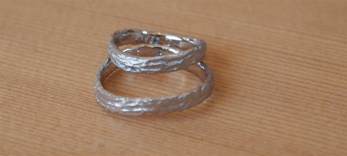 樹木の凹凸を手作業で手間暇かけて表現したテクスチャで、結婚指輪のベースも