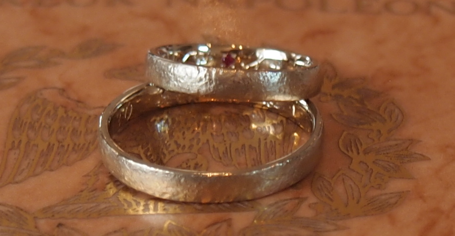 アンティークなイメージで、独特のテクスチャの結婚指輪(マリッジリング)を