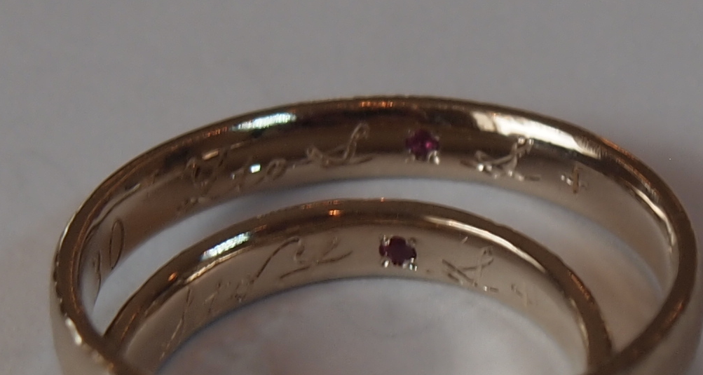 遠くから来店してくれましたので結婚指輪(マリッジリング)の内側にお二人の