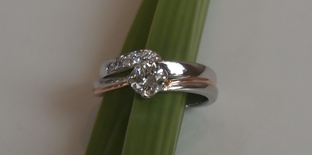 プラチナにピンクゴールドをデザインしたお洒落な婚約指輪に生まれ変わりました。