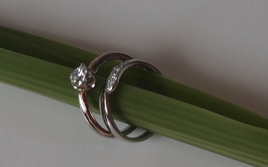 彼がデザインした婚約指輪のフォルムにピッタリとセット出来るように結婚指輪