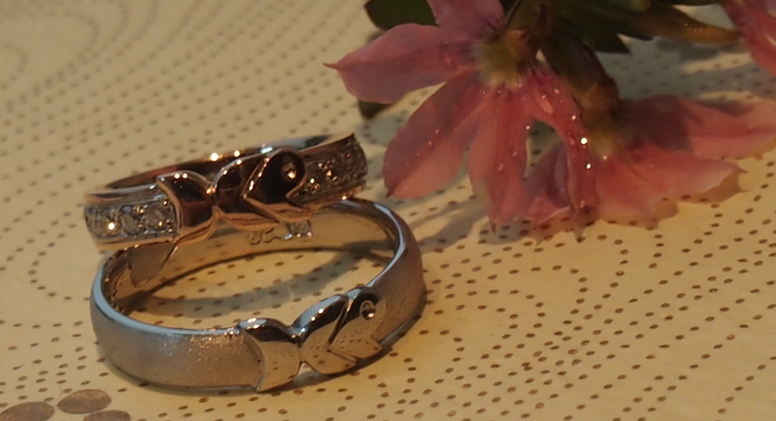 お二人のトレードマークを立体的に表現した結婚指輪。。。