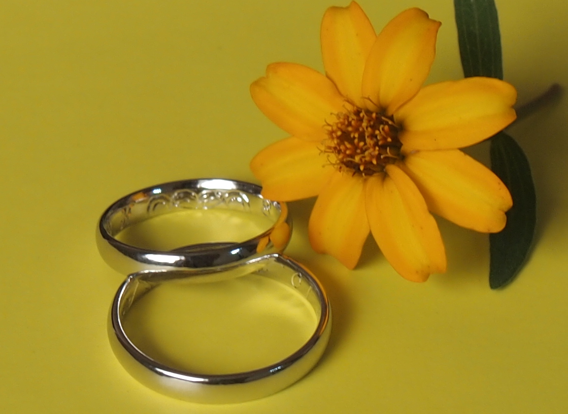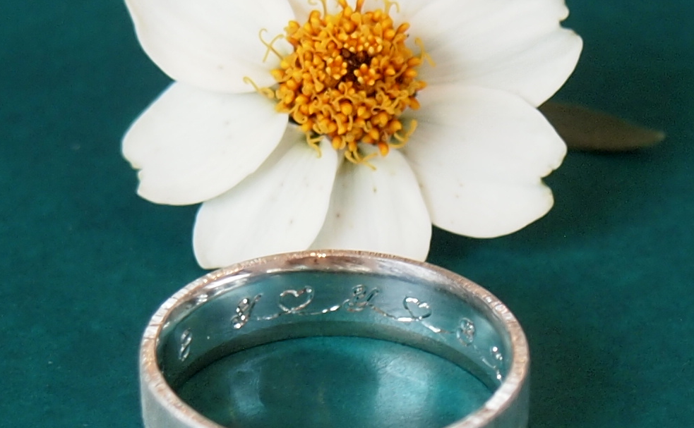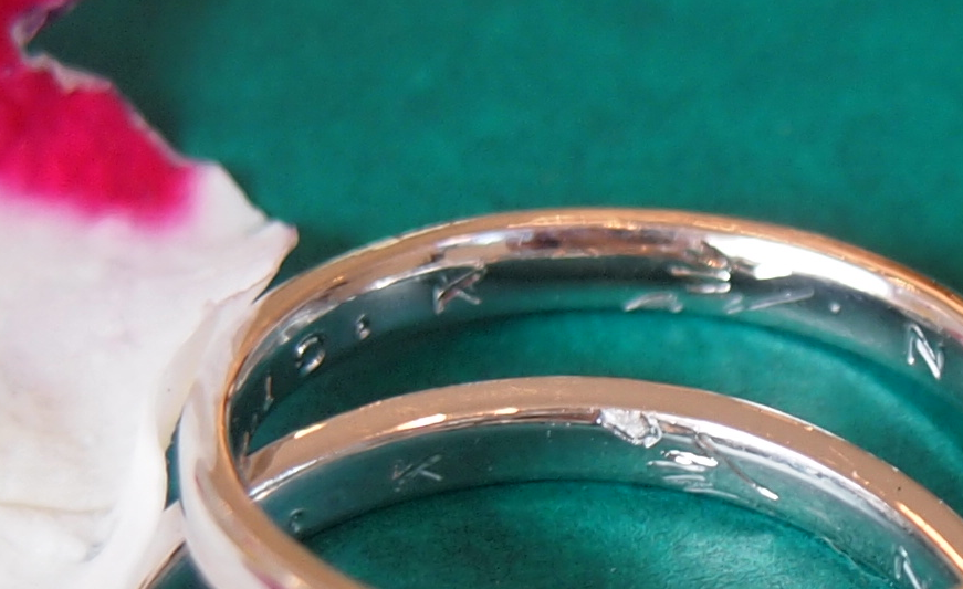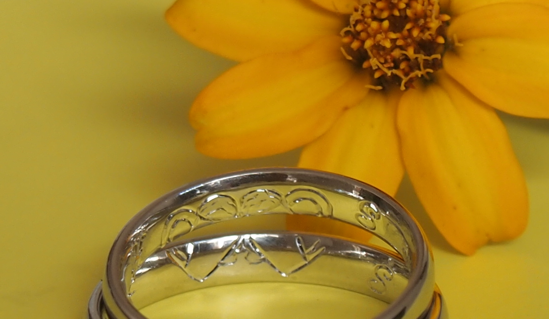 の内側でお二人のこだわりや絆や絵柄を手彫して、二人だけの結婚指輪にしてみ