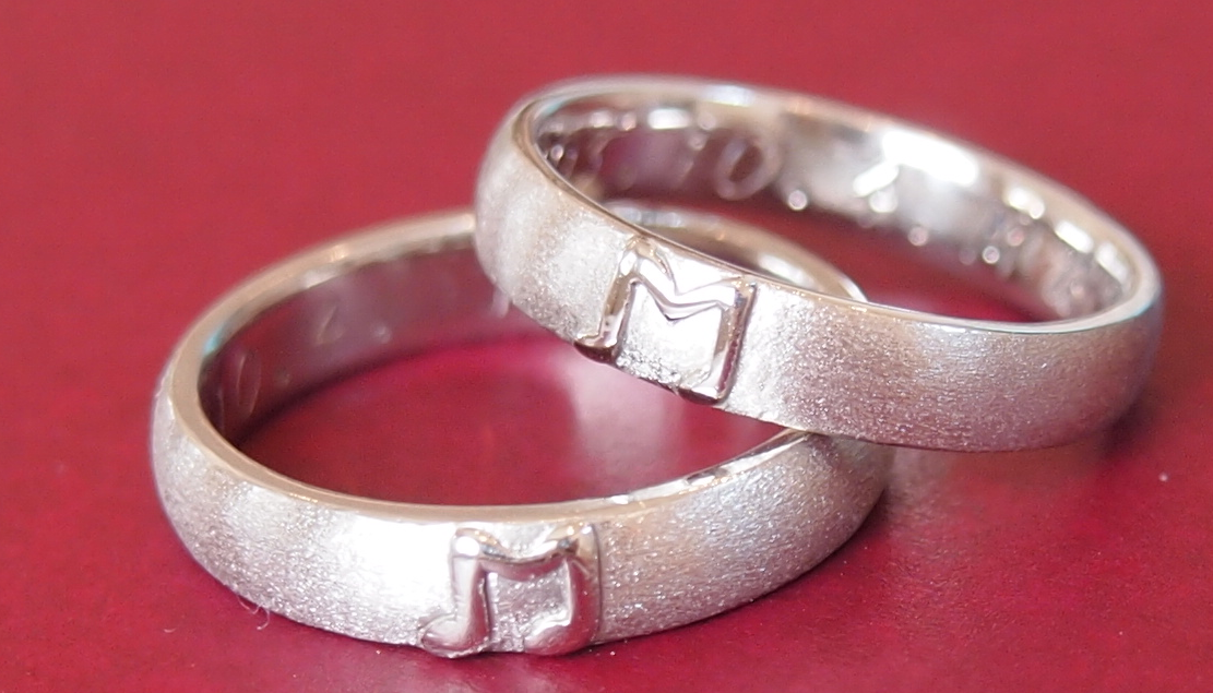 的に張り込んで結婚指輪のベースをつや消しにして、この音符の部分を艶出し