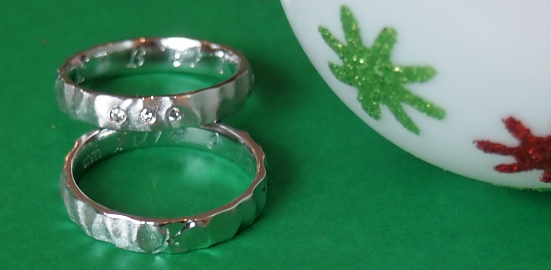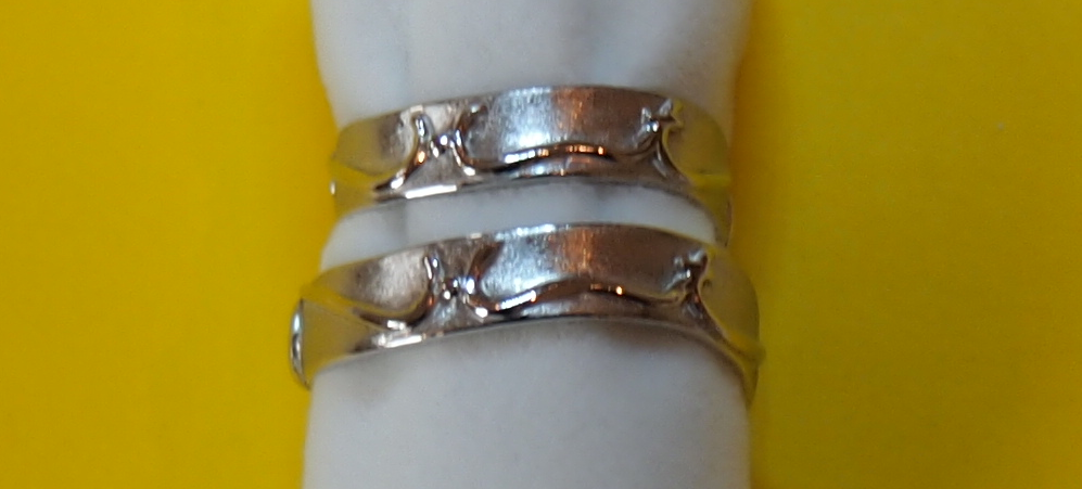 の、縫い目でお二人の”絆”を表現した、彼のデザインによる結婚指輪が完成し